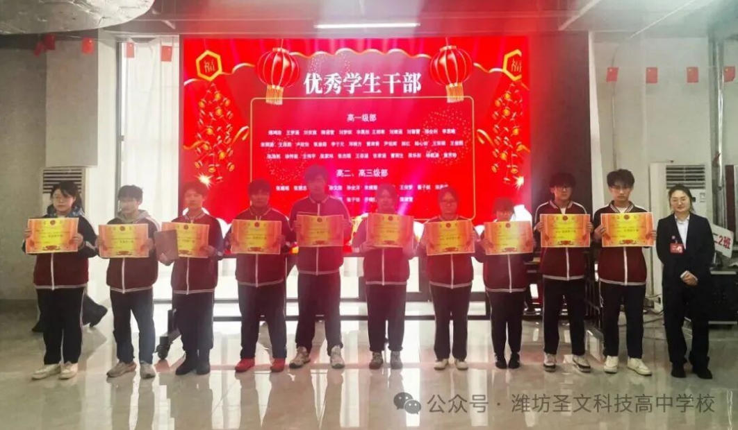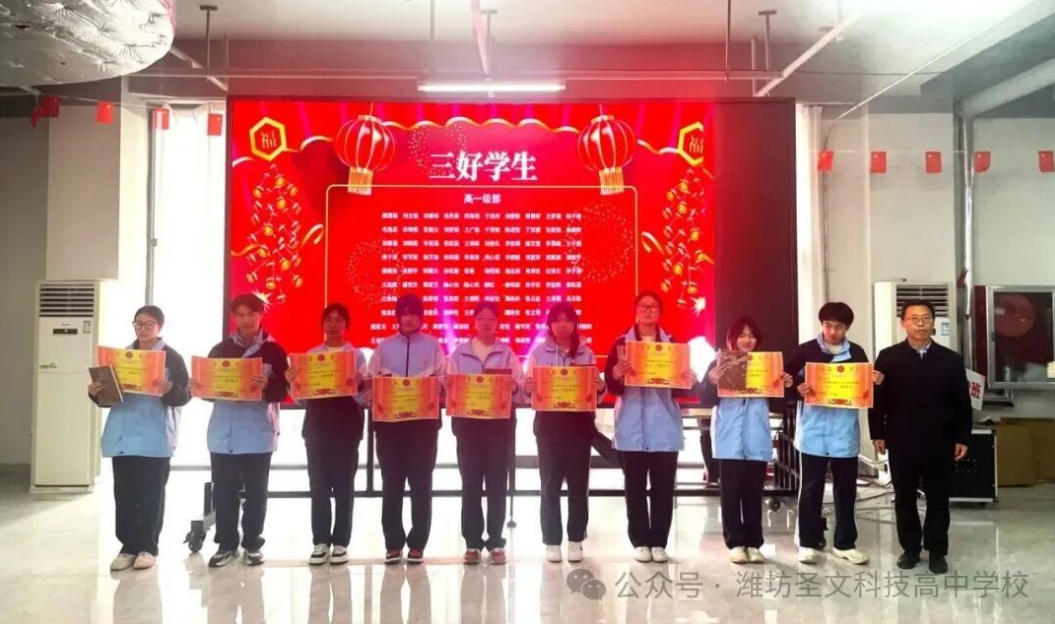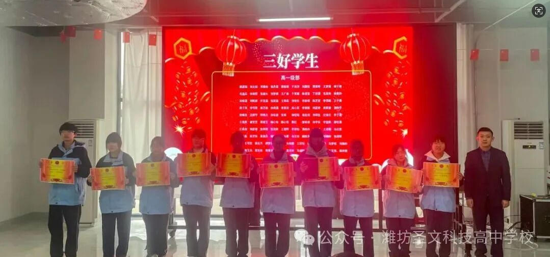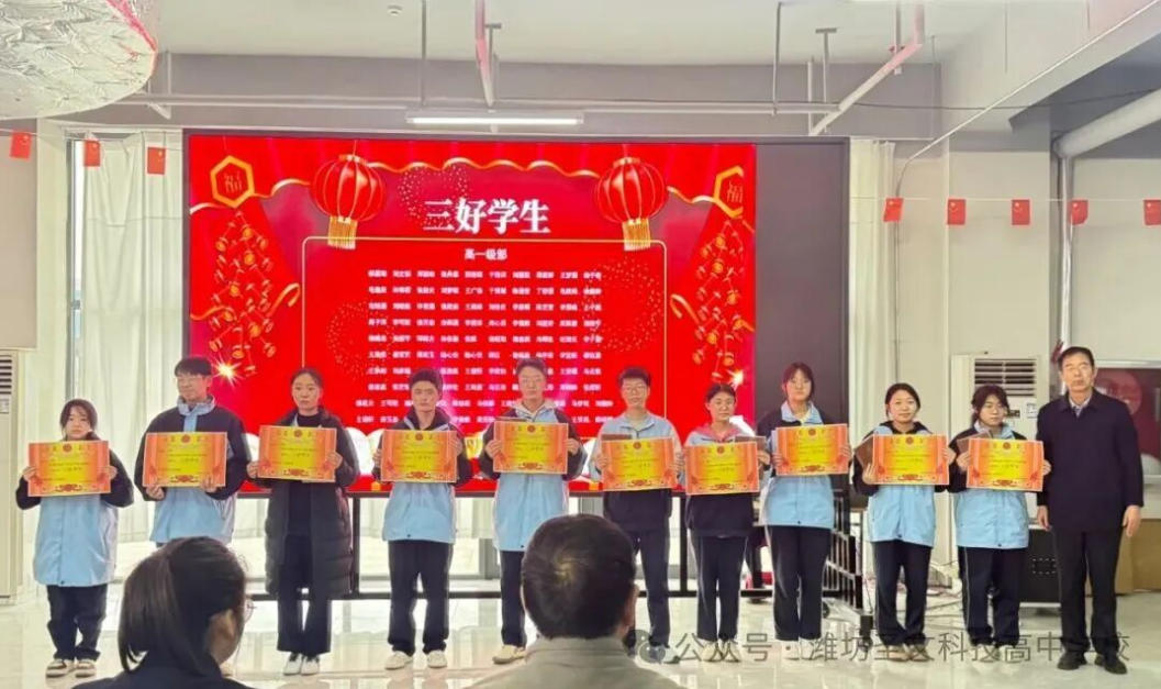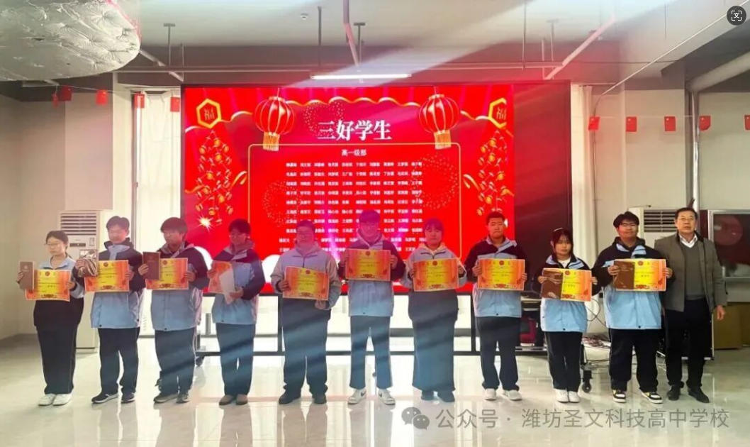 以榜样为灯,赴成长之约;以奋斗为笔,书少年华章。为表彰先进、树立标杆,激励全体学子勤学善思、笃行致远,彰显圣文少年风采,2月9日下午,潍坊圣文科技高中2025-2026学年第一学期颁奖典礼在学校凤鸣堂隆重举行。全体师生及校领导齐聚一堂,共同见证少年们的荣耀时刻,共启奋进新征程。